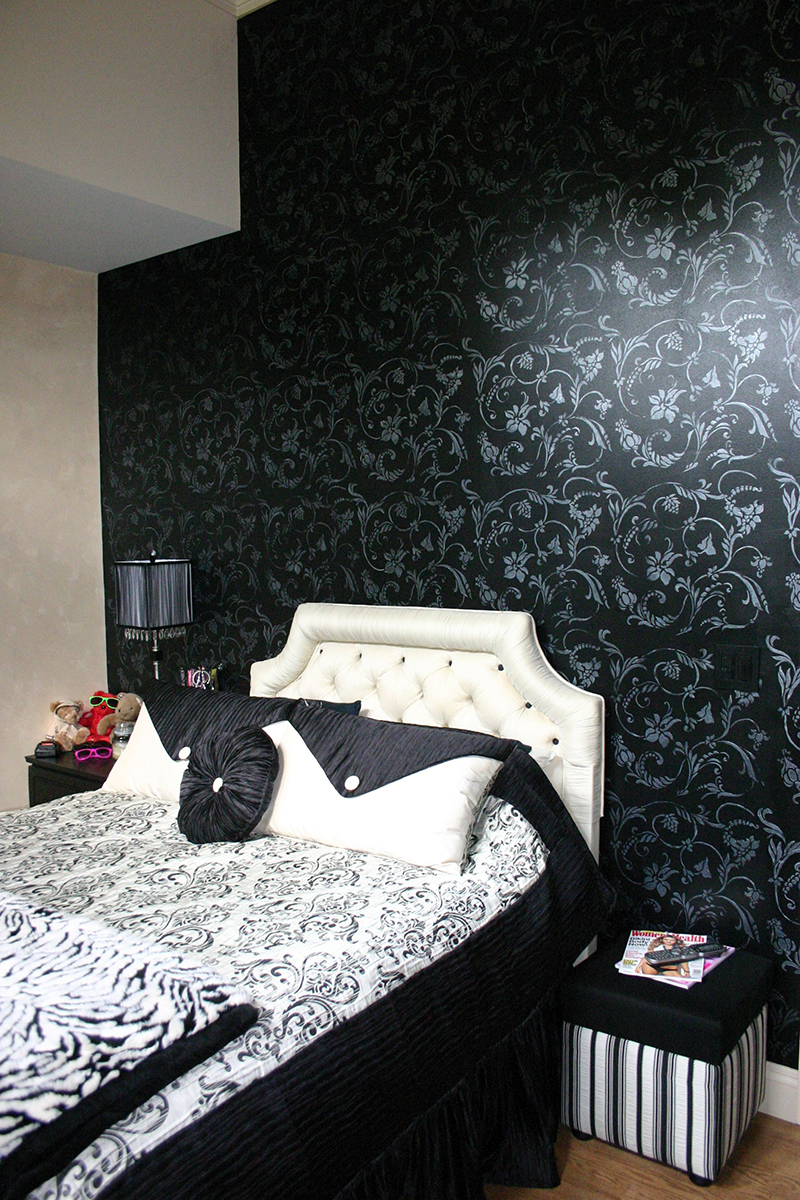 Tufted Headboard, Custom Bedding, Wall Finish