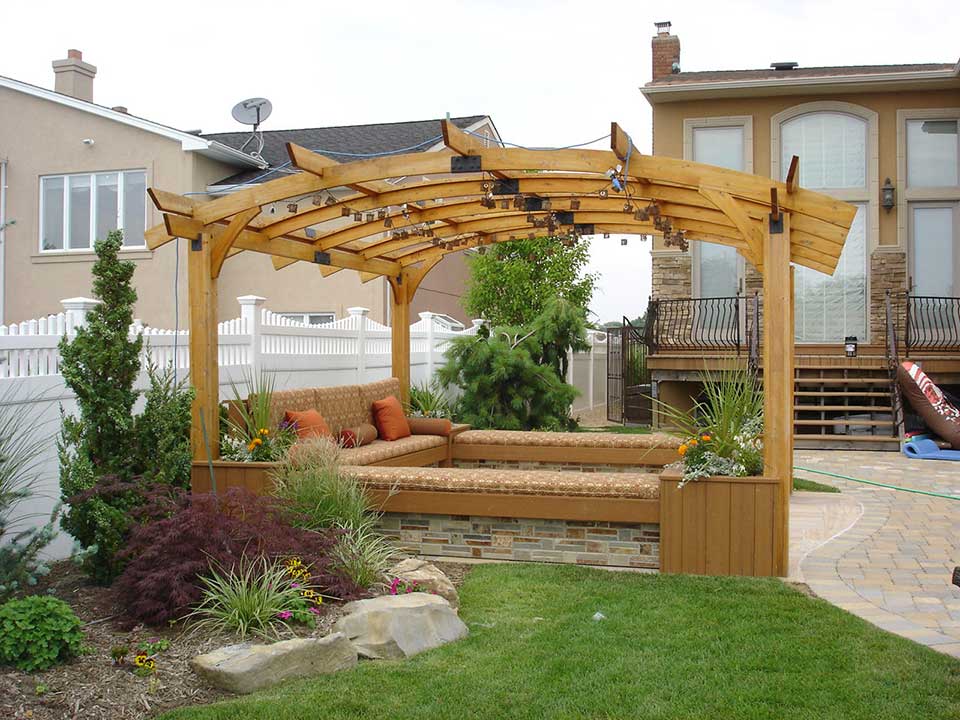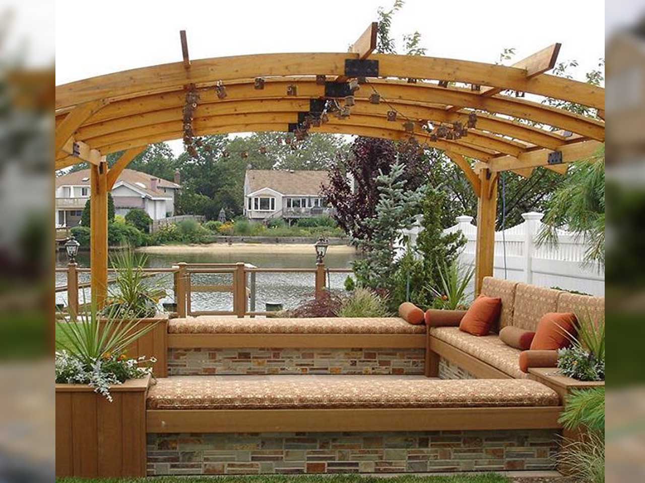Custom Gazebo, Built-In Seating, Outdoor Upholstery, Landscape Design