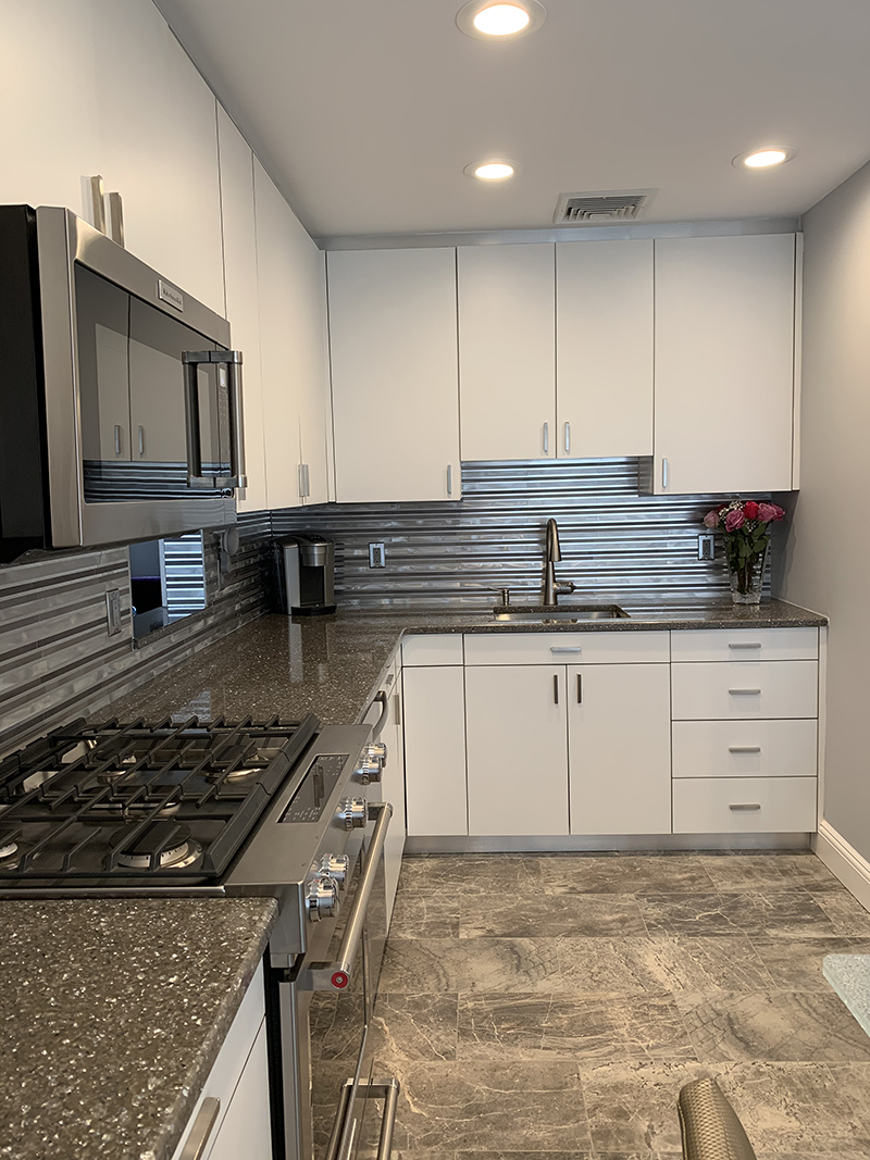 Hardware, Metal Backsplash, Stainless Steel Appliances, Porcelain Floor