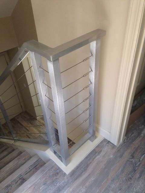 Custom brushed nickel metal tension railing, luxury vinyl flooring